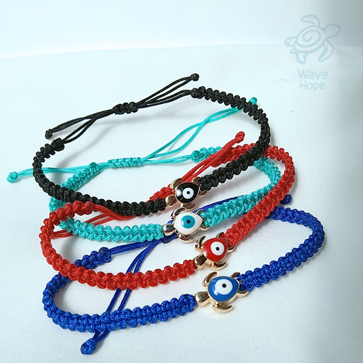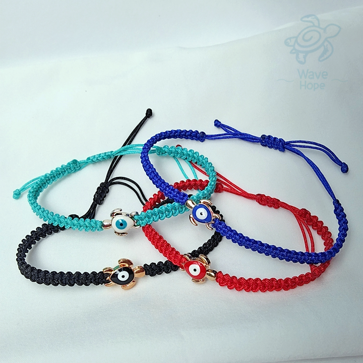 Manillas, con dije de tortugas caparazón ojo turco. Colores disponibles azul rey, negro, rojo y turquesa, diferentes tejidos